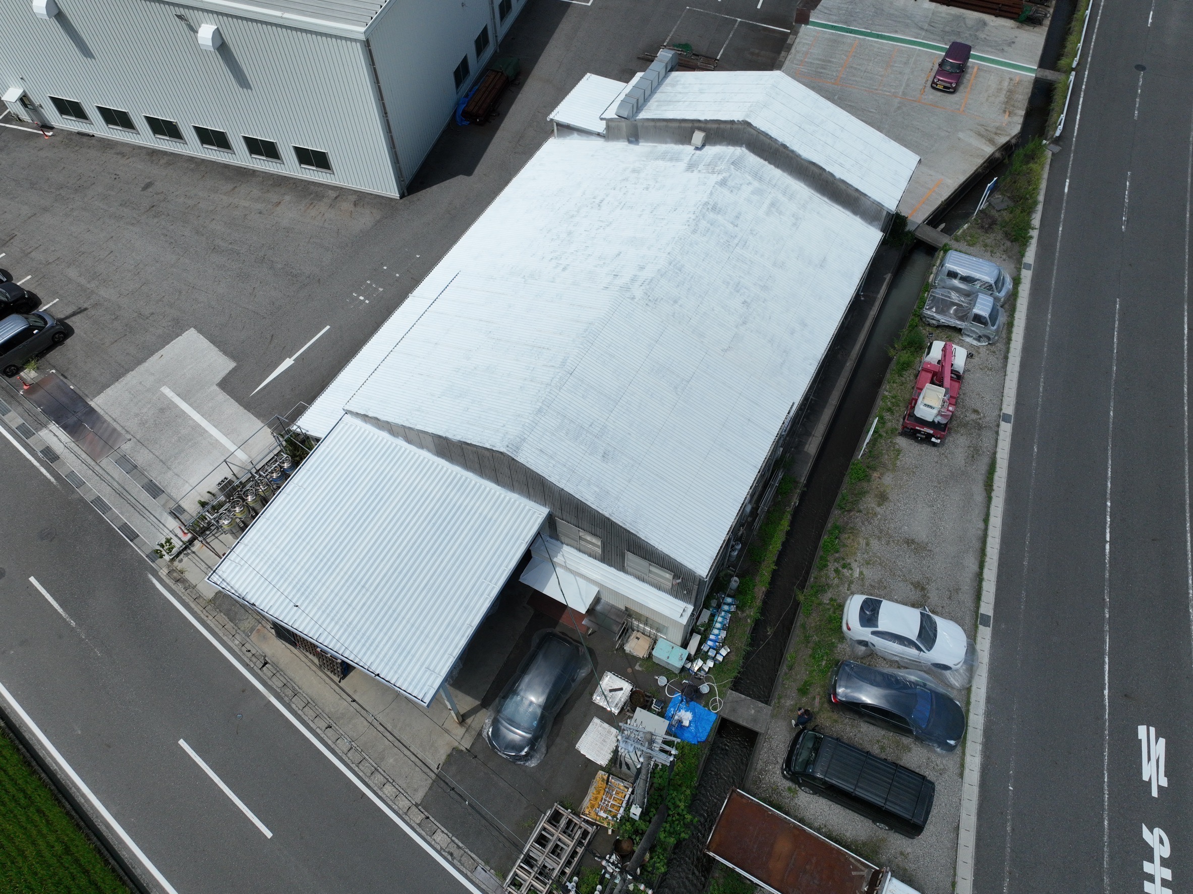 更に足場を組むと工場内の風通しが悪くなるため、ドローンのみで施工できることに興味を持っていただき、全体を涼しくするために遮熱塗装を決心されました。