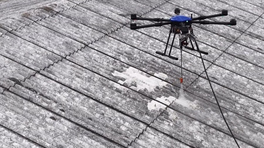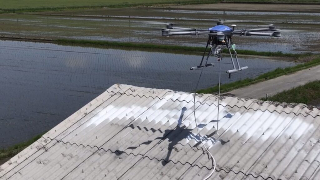 私たちはドローンを使って畜舎や工場などの屋根の遮熱塗装をしております。